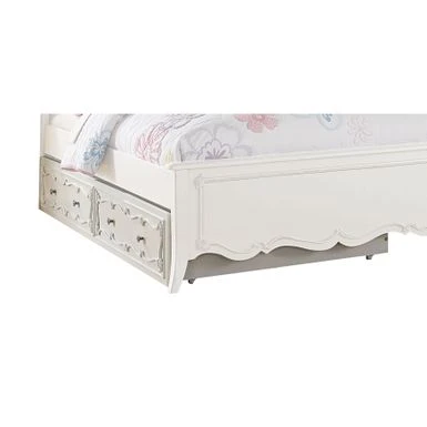 The lovely tufted accents and pearl white color of this bed make it a special place for a little one to sleep. The solid pine construction and solidly drawn fabric ensure that this bed will last through the formative years, becoming a favorite memory and attractive place to dream away. The trundle is sold separately.