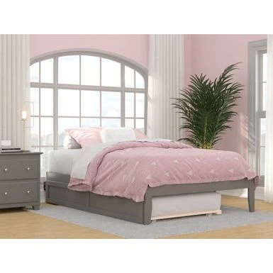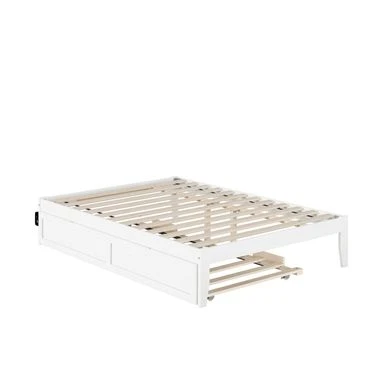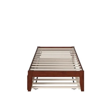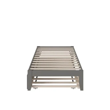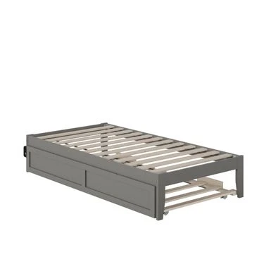 - Twin-sized trundle bed included, rolls easily on wheels and can be installed on either side