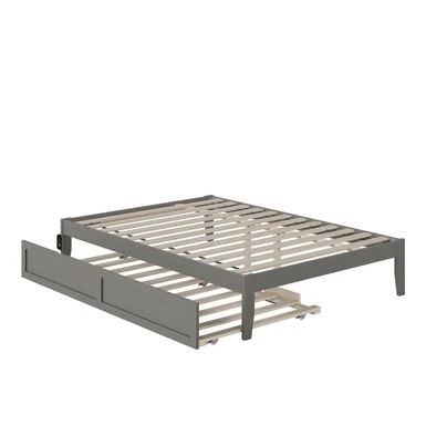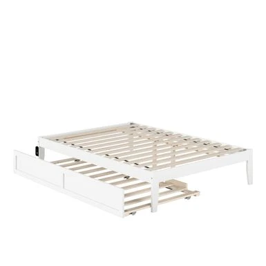 Upgrade your bedroom with our Colorado Bed featuring a sleek and symmetrical design that complements any decor. Made from eco-friendly solid hardwood and veneers with a non-toxic finish, this bed offers lasting durability without the need for a foundation. The slat kit provides excellent support for your mattress while promoting good airflow. This bed also includes a twin-sized trundle bed that rolls easily on wheels and can be installed on either side. Charge your devices with the included surface mount turbo charger, featuring two USB ports and a 6-foot cord.