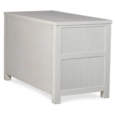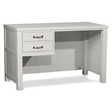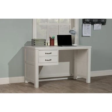 The Hillsdale Kids & Teen Highlands Desk is the perfect choice for long-lasting and versatile workspace. Crafted from solid kiln-dried Pine hardwood, this desk features a timeless side panel design and wire grommets to keep your workspace tidy. The two left-side drawers have a finished European interior for maximum storage, and strong English dovetail joinery at the back and front of the drawers ensure longevity. The desk also features side-mounted ball bearing drawer guides for easy use and 5″ solid iron hardware with a Pewter finish. The wirebrushed White finish provides a stylish patina that adapts to your child’s changing tastes. This desk requires some assembly.