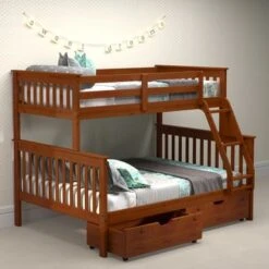 Twin Over Full Mission Bunk Bed With Drawers Or Twin Trundle – With Storage Drawers – Full