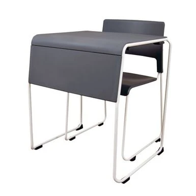 The Luxor Lightweight Stackable Student Desk and Chair set is the perfect addition to any classroom seeking a versatile, affordable and stylish solution. The modern Slate Gray top and white frame design is complemented by a durable polypropylene surface with an integrated modesty panel and pencil holder. The minimalist construction and 16 lb. weight make it easy to move around and stack up to 6 high for space-saving storage. The set includes one desk and chair, which are ANSI/BIFMA certified for safety and quality.