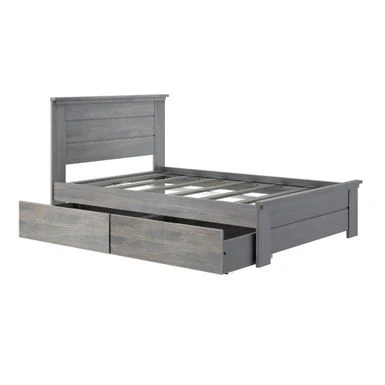 Bring the fun of the farm in with the Modern Farmhouse Full Bed with Panel Headboard & Storage Drawers from Max & Lily. Bring the fun of the farm in with the Modern Farmhouse Full Bed with Panel Headboard & Storage Drawers from Max & Lily. With a fabulous barnwood finish and enhanced safety, this bed offers the perfect combination of fun and functional that kids and parents love. Added panel headboard creates a stylish look. Coordinating storage drawers make sleepovers simple. The durable, non-toxic, low-VOC finish makes this bed a safe choice for any kids room. Sleep and storytimes feel secure thanks to a 400 lb resting weight capacity for each sleeping surface. Solid New Zealand pine wood construction, solid plywood slats and metal support bar provide strong, durable support. Works with standard full-size mattresses and does not require box springs or bunkie boards. Super safe design meets or exceeds Federal safety standards for kids furniture. Ships in one box with instructions and hardware included. 2+ adults make assembly quick and easy. When its time for play, this beds space saving design frees up plenty of room for kids to be kids. The Modern Farmhouse Full Bed with Panel Headboard & Storage Drawers from Max & Lily offers exceptional quality and affordability that kids and their parents will enjoy for years to come. Max & Lily is a member of the Maxwood family of brands – the kids furniture experts bringing a tradition of superior quality, safety and fun!