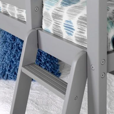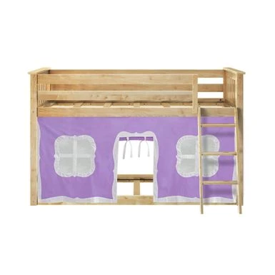 Plenty of room for sleep and play? Now thats a win-win! The Max & Lily Twin Over Twin Low Bunk Bed with GreyCurtains is the perfect combination of functional and fun that both kids and parents love. Plenty of room for sleep and play? Now thats a win-win! The Max & Lily Twin Over Twin Low Bunk Bed with GreyCurtains is the perfect combination of functional and fun that both kids and parents love. Only 50 inches high, this space-saving low bunk design is great for smaller spaces and safe for younger children. The bottom bed sits only two inches off the floor, making it the perfect sleep option for little ones. Top bunk features tall 14 guardrails, so the bed safely fits standard mattress sizes. Angled ladder with rounded edges offers comfortable, easy climbing. Added bonus – ladder is both reversible and removable, so it is flexible to work with any space. Solid, knot-free New Zealand pine wood adds strength and stability. Solid, knot-free New Zealand pine wood adds strength and stability. All Max & Lily products use a durable, low VOC finish. The slatted head and footboards and flush, color-matched hardware give this low bunk bed a clean, modern look. Instructions, upper/lower slat rolls, and required hardware are included. With solid plywood slats and a metal support bar for the top bunk, each sleeping surface can support 400 pounds of resting weight. 2+ adults makes assembly simple and easy. 100% cotton play curtains add even more fun to your room. This bed meets or exceeds Federal safety standards for kids furniture. When its time for play, this low bunk beds space saving design frees up plenty of floor space by stacking two sleeping surfaces. The Twin Over Twin Low Bunk Bed with Grey Curtains from Max & Lily offers exceptional quality and affordability that kids and their parents will enjoy for years to come. Max & Lily is a member of the Maxwood family of brands – the kids furniture experts bringing a tradition of superior quality, safety and fun!