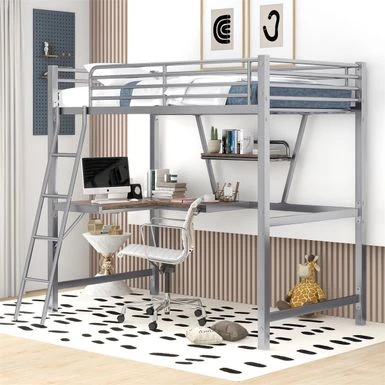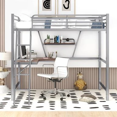 - [Built-in Desk and Shelf] This loft bed making full use of space, coming with a desk and shelf under bed, the bed creates a great personal workstation.