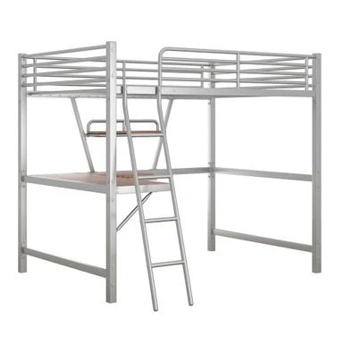 This metal loft bed provides a stylish and comfortable place for children to sleep and study. This modern loft bed includes a smart table top with shelf – perfect for home work, reading, writing, drawing and other activities. Full-length metal protective fencing on the upper bunk for added security. A matching fixed ladder provides safe and easy access to the upper block. Smooth, clean lines and a black powder-coat finish enhance the cool, contemporary style. This loft bed is the ideal way to maximize space in a child’s or teen’s room.