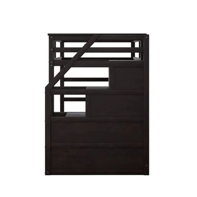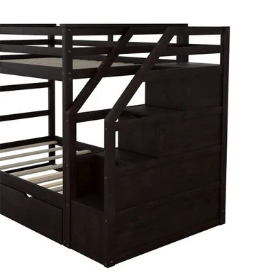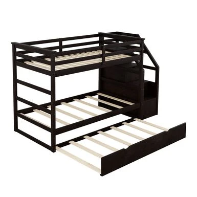 - [Multifunctional Trundle Bunk Bed with Stairs] This twin bunk bed provides an extra trundle option and three spacious storage stairs. The trundle bed is great for guests and friends. Three storage stairs are meticulously sized to keep toys, clothes, books, bedding sets and other bedroom necessities clean and tidy.