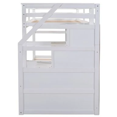 Bunk beds are a lot of fun, theyre also super practical, but if you want a bunk bed with elegance and style – this one has it in spades, this Twin-Over-Twin Bunk Bed with Trundle and Stairs is perfect for your home. The trundle under the bottom bed makes this piece a great option for sleepovers. Three stairs provide ample storage for your little ones’ toys and bedding. High-quality, solid pine legs and a strong, durable frame ensures stability and durability for long-term use. Slat kit included so box springs are not required. This bunk bed is designed with a clean silhouette and a hue of elegance. It suits all styles of home decoration, and completes the look of any bedroom.