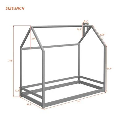 - Twin Bed Overall: 78″L x 41.3″W x 74.8″H