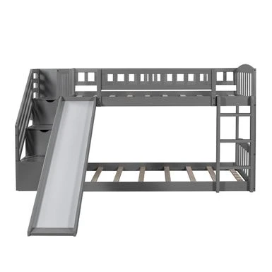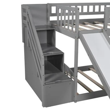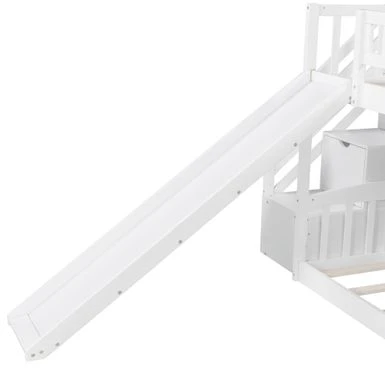 - [Convertible Ladder and Slide] With built-in ladder and staircase, it is easy for you to climb up and down from the top bed. Featuring a low slide for you to play, this bunk bed can add fun to you and develop your sense of balance and coordination. The slide and the ladder are convertible, both of them can be put left or right. What’s more, the staircase with drawers can be put left or right.