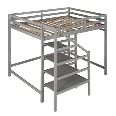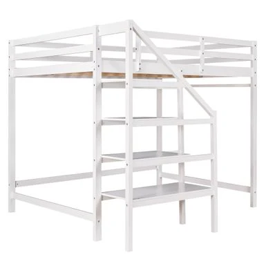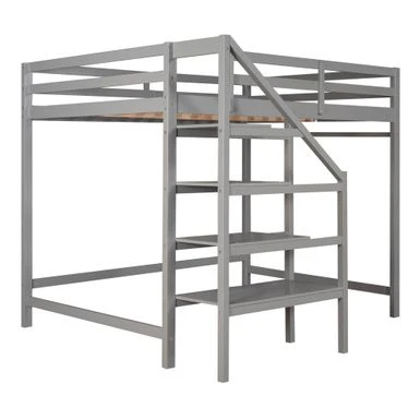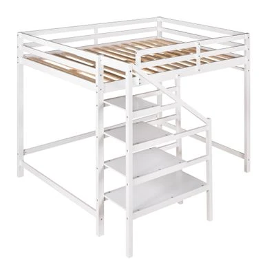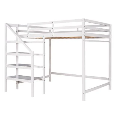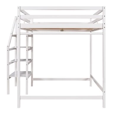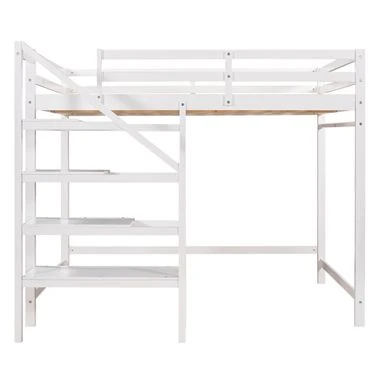 Anchor your bedroom in tasteful, transitional style with this product, the loft bed features a storage staircase.Down below offers plenty of storage space for clothing and bedding. The shelves can serve as a ladder as well, providing an easy access to the bed. Coming with support slats and stable guardrails, this loft bed can guarantee you a comfortable and safe experience. Definitely a great addition to your room.
