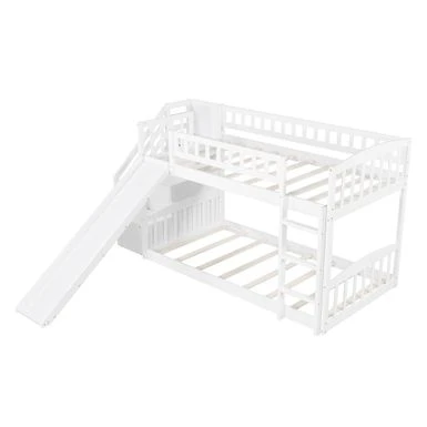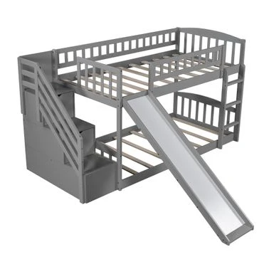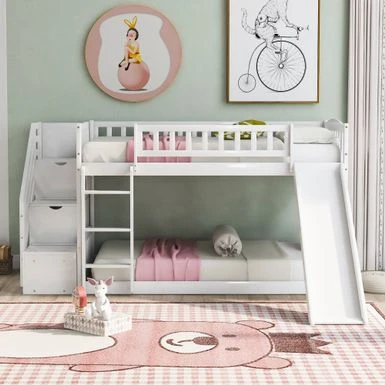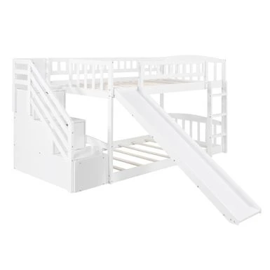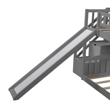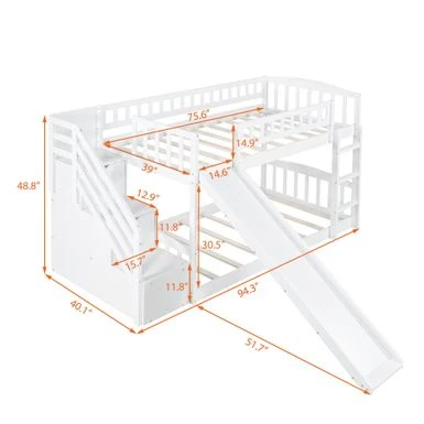 - [Convertible Ladder and Slide] With built-in ladder and staircase, it is easy for you to climb up and down from the top bed. Featuring a low slide for you to play, this bunk bed can add fun to you and develop your sense of balance and coordination. The slide and the ladder are convertible, both of them can be put left or right. Whats more, the staircase with drawers can be put left or right.