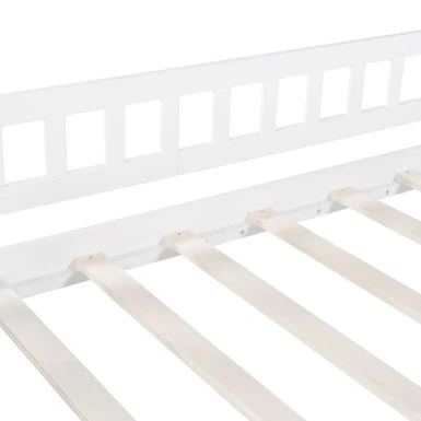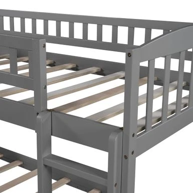 - [Sturdy and Durable] Crafted with pine wood frame, this bunk bed has solid plywood slats for upper and lower bunk, no box spring is needed. The full-length guardrails of the upper bed is equipped to protect you from accidental falls to keep you safe and secure during play or sleep.