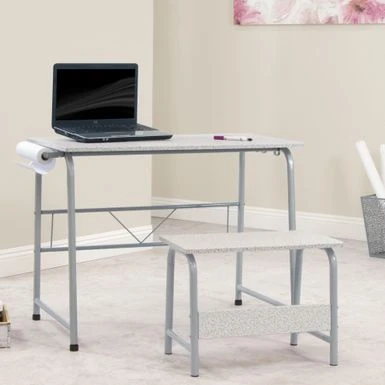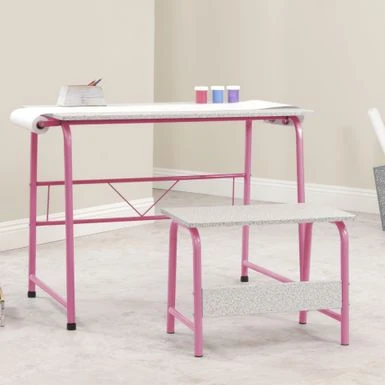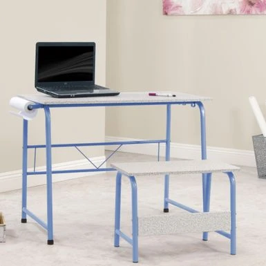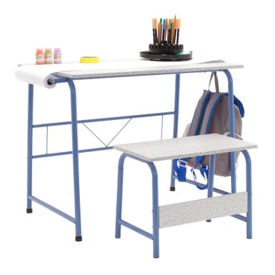 Create with ease on this sturdy work table and bench. Enjoy the uncluttered simplicity of this project center, featuring focused, utilitarian design. With a strong steel frame and tough laminate top, this set is easy to clean and includes a paper roll bar for easy use of art paper. A pair of hooks allows easy hanging of backpacks or other containers.