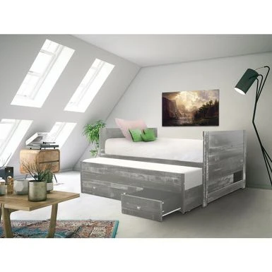 Update your child’s bedroom with the Taylor & Olive Begonia Twin Bed. This modern and contemporary style bed is made of durable pine wood with a choice of rustic weathered or painted finishes. It features a twin-sized trundle bed that rolls out on casters, accommodating up to an 8-inch mattress for overnight guests. Additionally, the bed includes three hidden storage drawers with silver pulls for clothing or extra bedding. With hardware and slats included, this twin bed is a practical and stylish addition to any child’s room.