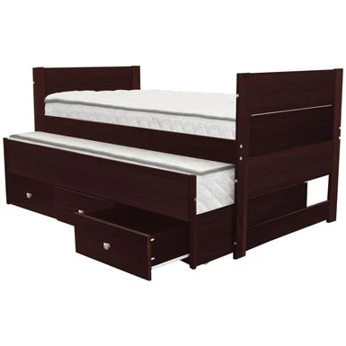 - Roll out twin trundle bed accommodates up to an 8-inch mattress