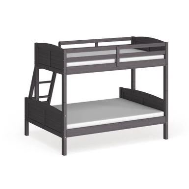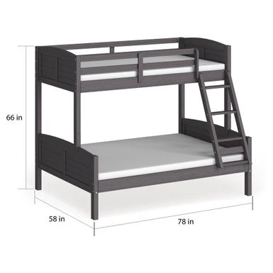 Conserve space and provide a comfortable place for two little ones to sleep with this twin-over-full bunk bed. Guardrails on top help keep your kid safe, while the step ladder enables easy climbing. Conserve space and provide a comfortable place for two little ones to sleep with this twin-over-full bunk bed. Guardrails on top help keep your kid safe, while the step ladder enables easy climbing. This grey bunk bed supports a full-size mattress without a box spring, and the bed is convertible into a separate, full-size sleeping space to accommodate growing children.