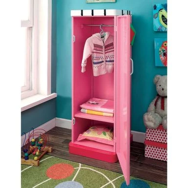 - Convenient storage space within with metal hanger pole and lower shelf divider