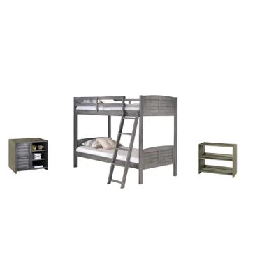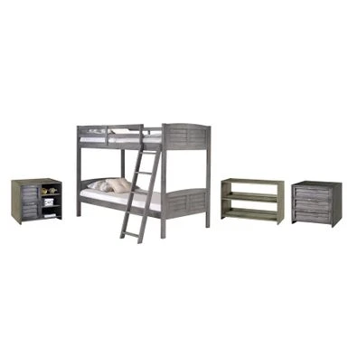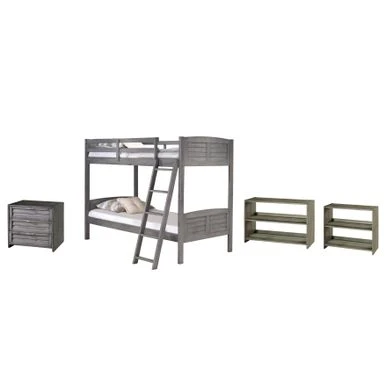 Twin Over Twin Bunk With Case Goods – Bunk, 2 Drawer Chest, Bookcase