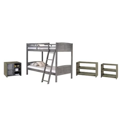 Twin Over Twin Bunk With Case Goods – Bunk, 3 Drawer Chest, Bookcase