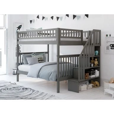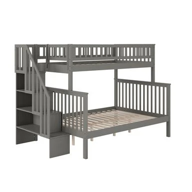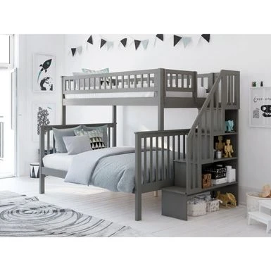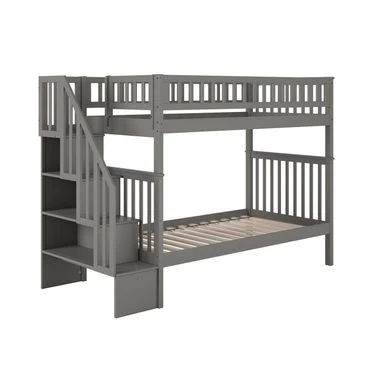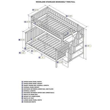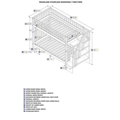 - Staircase bookshelf can be assembled at either end of the bunk bed